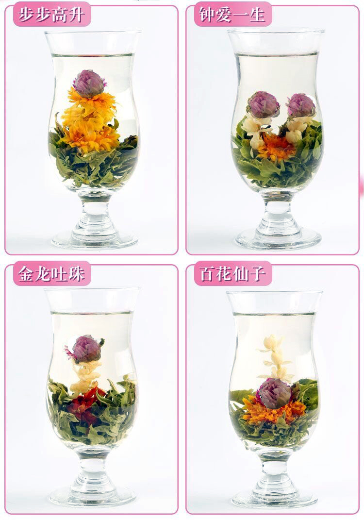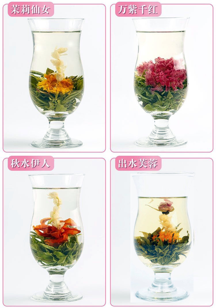 With tea and edible flowers as raw materials, after shaping, trapping and other processes made. When brewing, the flower tea with different shapes can be opened in the water.